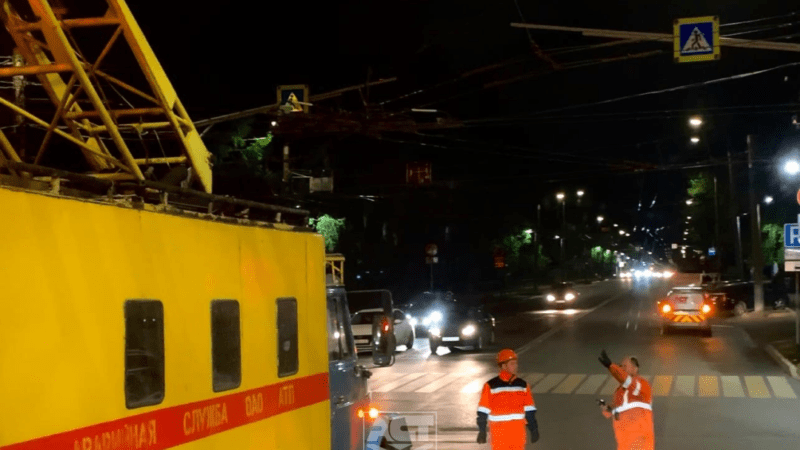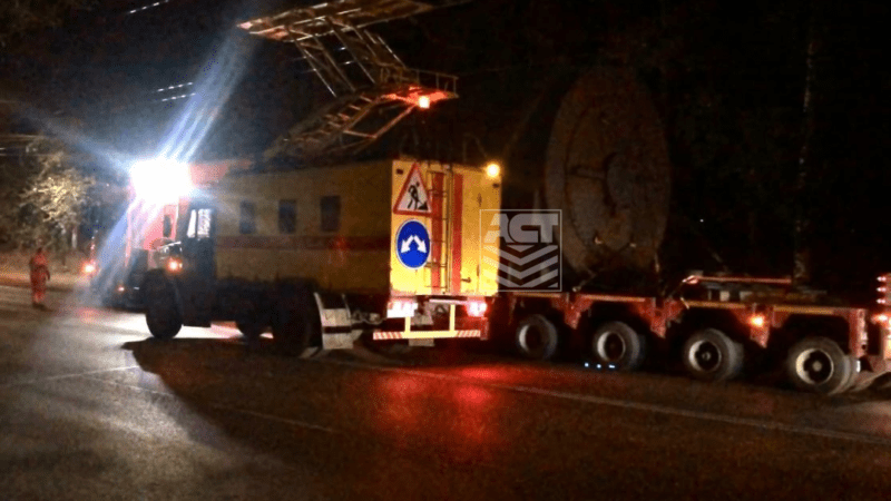 Высота нашего автопоезда достигала 4.99 метров. Поэтому на протяжении всего маршрута в местах пересечения с контактно-кабельной сетью городского электротранспорта нам требовался подъём проводов, который осуществляла служба энергохозяйства.